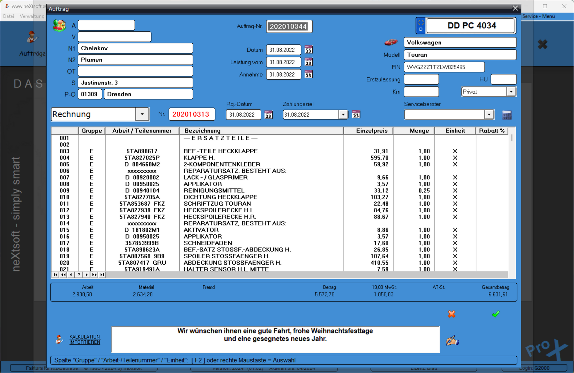 AUTO.profiFaktura für Kfz-Werkstätten, Lackier- & Karosseriebetriebe